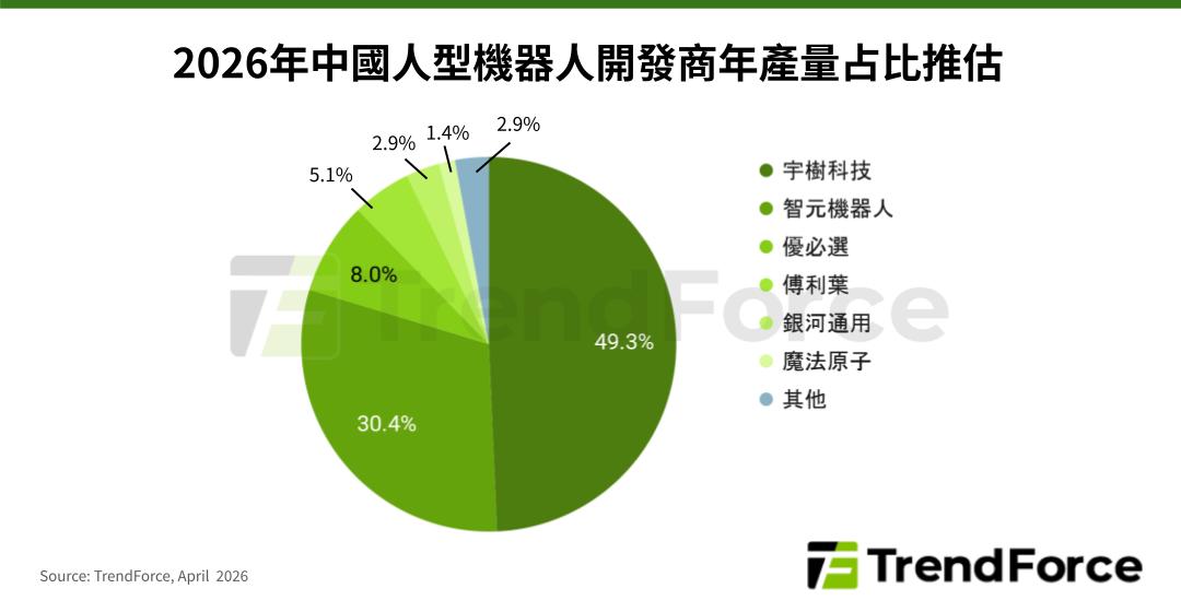 TrendForce: 預估2026年中國人型機器人產量年增94%,宇樹、智元合計拿下近八成市場