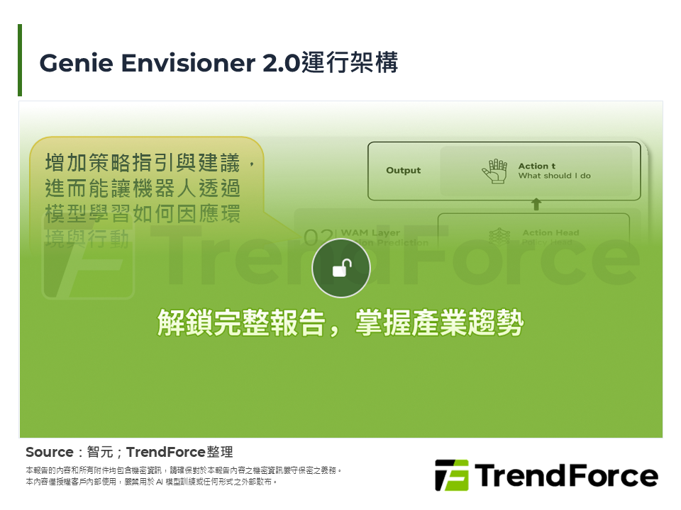 - 世界模型升級:Genie Envisioner 2.0將行動納入學習框架,推進可互動環境建模。